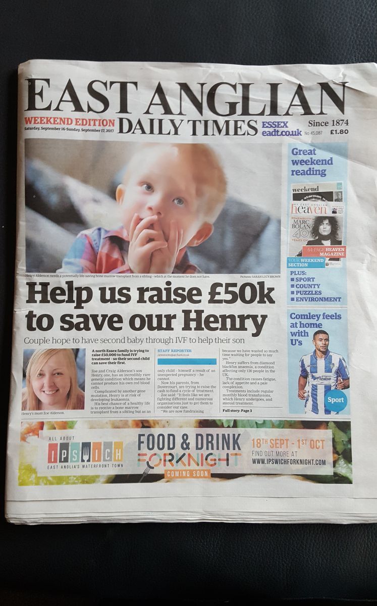 It seems our journey with Henry is becoming more interesting to the mainstream media. The day after our piece going out on BBC Look East news last Wednesday (13th September 2017), the East Anglian Daily Times made it clear they wanted to run our story for their weekend edition paper.
